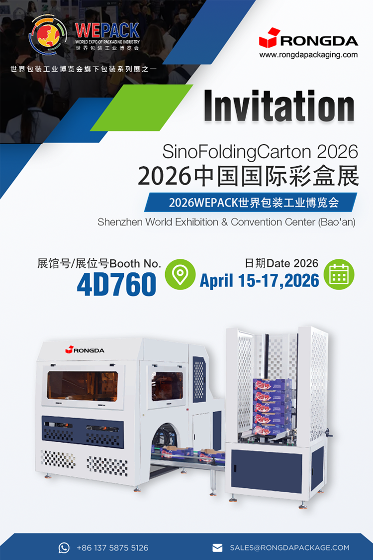 Maquinaria de embalaje Wenzhou Rongda Co., Ltd.se complace en anunciar su participación en China International SinoFoldingCarton 2026, que tendrá lugar desde15 de abril al 17 de abril de 2026, en el Centro Mundial de Convenciones y Exposiciones de Shenzhen (Bao’un).